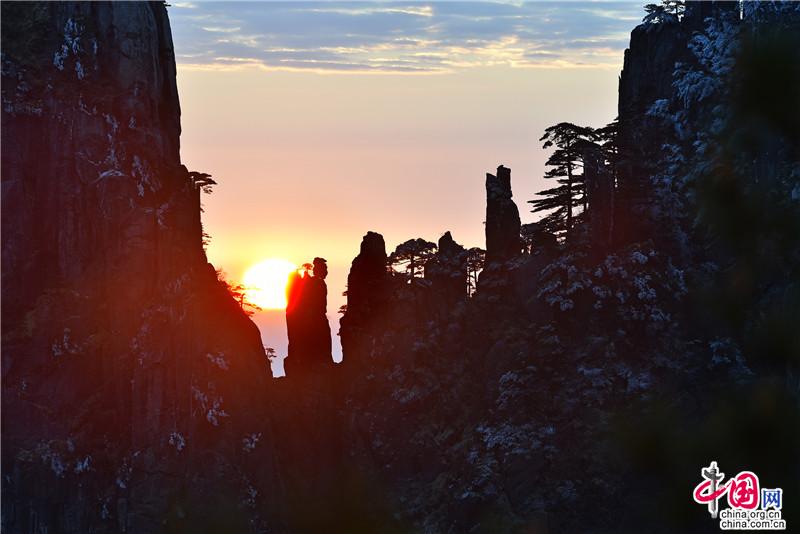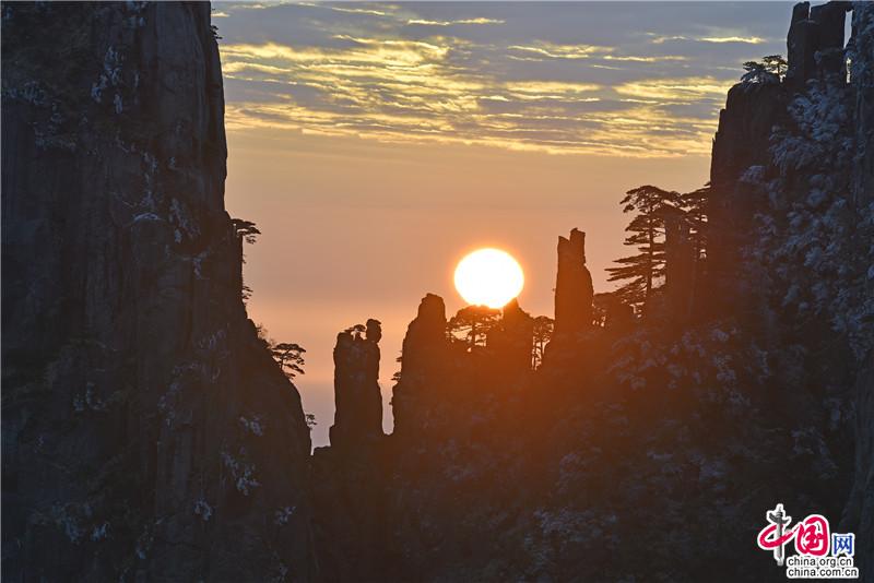 【點睛】新年伊始,黃山風景區迎接今年的第一縷陽光,在一片歡呼聲中太陽跳出了地平線來到了黃山之巔。