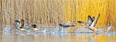 張玉林告訴記者,近年來張掖市高度重視生態文明建設,采取有效措施改善保護生態環境。通過采取退耕還濕、植被恢復、生態補水、圍欄封育、棲息地恢復、生態環境整治等措施,有效促進了濕地生態系統的保護和恢復,為鳥類遷徙、繁衍提供了良好的生存環境。由于濕地恢復,甘州區近年來又在濕地清淤中堆積了許多無人島,這里成了黑翅紅腳鷸、燕鷗的繁殖地。黑鸛、天鵝、白琵鷺在張掖數量較多,經??梢姺N群活動。國家一級保護動物白尾海雕、玉帶海雕等珍稀動物也常來光顧。