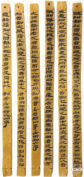 簡是竹子削制成的竹片;牘是木頭削制的木片,也叫札。二者統稱簡,用來書寫文字。最初人們把文字刻在簡牘上,用繩子連接起來,當時叫“簡策”。絲織品發明之后,人們把文字寫在帛絹上,名叫“帛書”。后人用“竹帛”代表史冊和書籍。字寫在帛絹上,自然輕便好用,但帛的造價成本太高了,人們主要還是用竹木做的簡牘書寫。所以,從西周到魏晉之際,在造紙工藝改進前大約1200年間,簡牘是漢字的主要載體。后隨著造紙術的進步,紙張的大量運用,簡牘逐漸退出了歷史舞臺,成為歷史的遺跡。文/陳芊