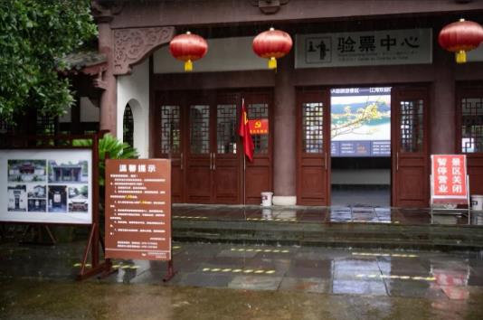 受持續強降雨影響,婺源江灣景區入口豎立起了“景區關閉、暫停營業”的提示牌