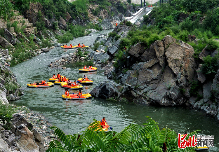嶂石巖峽谷漂流是河北地區規模較大、自然河道較長、基礎設施完善、生態保護較完好的峽谷漂流,全程15.8公里,落差240米,塑造了“江北第一生態漂流”主題品牌,是戶外運動休閑的不二選擇。