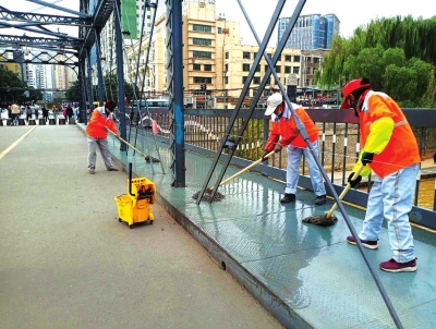 大景區管委會每日擦洗景區環衛設施、導覽宣傳牌等服務設施,每周至少沖洗綠化帶、樹木積塵1次。對中山橋及南北廣場、黃河母親等重點區域每日清洗一次,日清洗面積約60萬平方米,保持了全線干凈整潔。對大景區安寧段干枯蘆葦、七里河小西湖橋下河灘地、城關區雷壇河河灘地和綠色出行線進行集中清理平整,累計清理各類垃圾900余噸,美化河道面積10936平方米,提升了景區潔凈程度,并加大環衛設施改造配建力度,對大景區所屬10座環保公廁蹲臺進行提升改造,更換馬拉松公園和金雁橋下環保公廁2處。在景區沿線新配置兩分類垃圾箱307組、四分類垃圾箱155組、更換大垃圾桶50個,全線垃圾桶達到1629組,進一步完善了大景區配套垃圾收集處理設施。
