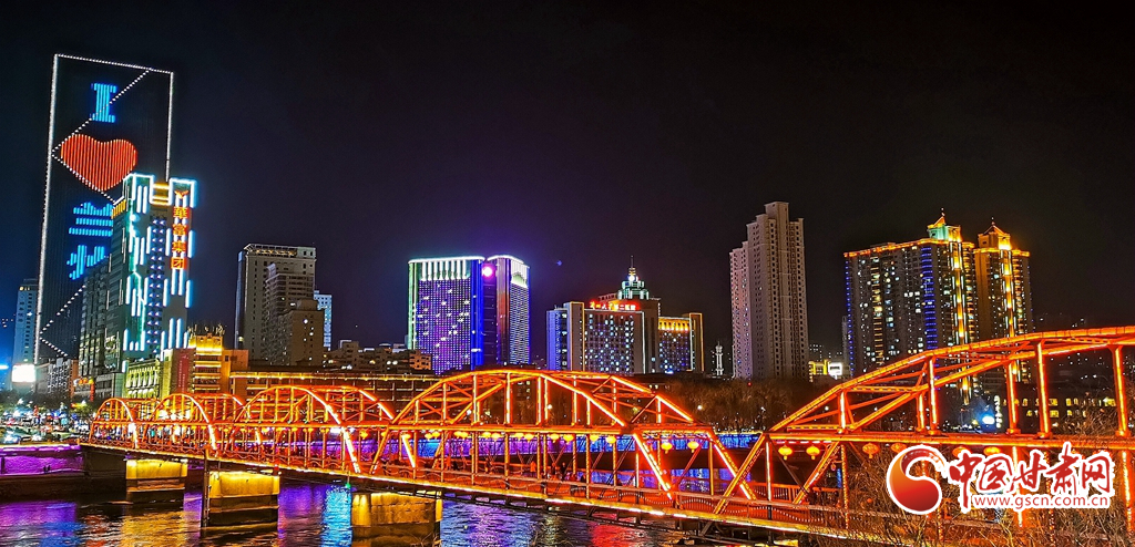 2月21日,蘭州中山鐵橋燈火璀璨。(手機拍攝)