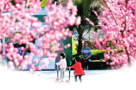 開學前夕,孩子們在柳綠花明、青草萌芽的市區濱江濕地公園里擁抱春色,告別寒假。映襯著孩子們活潑的身影,玉蘭、紫葉李、杏花、櫻花盡情綻放,到處一派春意盎然,透著勃勃生機。記者 冉創昌 攝影報道