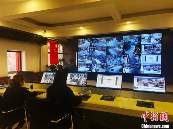 蘭州五泉山公園對古建筑群啟動數(shù)字化保護,智能監(jiān)控室聯(lián)網(wǎng)公安系統(tǒng)。 高康迪 攝