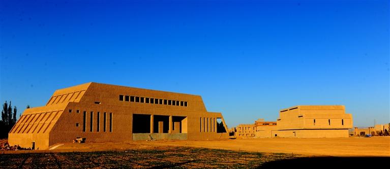 走在磨盤大道上,逐一參訪已經建成的敦煌國際美術館、古化石館、佛教藝術館、中華根藝館、古錢幣館、絲綢之路館、彩陶館、玉文化館、栗亭硯館、青銅器館、隕石館、非遺館12個單體博物館、胡楊山以及正在建設中的沙漠寶藏館。
