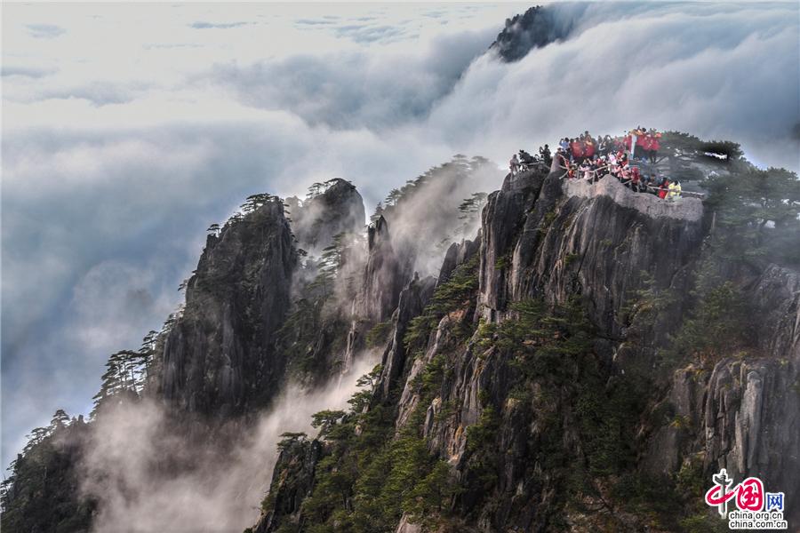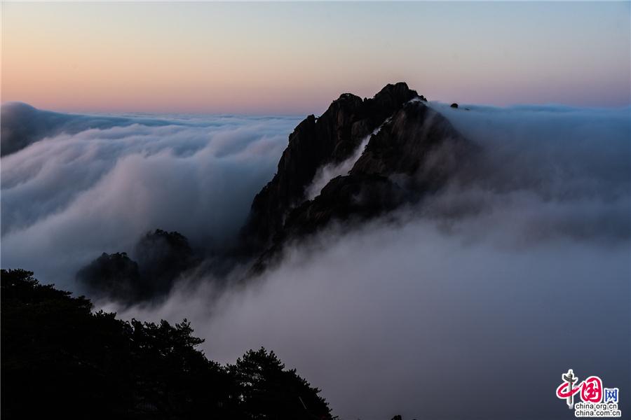 凌晨,當云海隨著氣流漫過天都峰與蓮花峰時瘋狂的傾瀉而下,浩浩蕩蕩直奔東方注入大海,成就浩瀚的海洋。