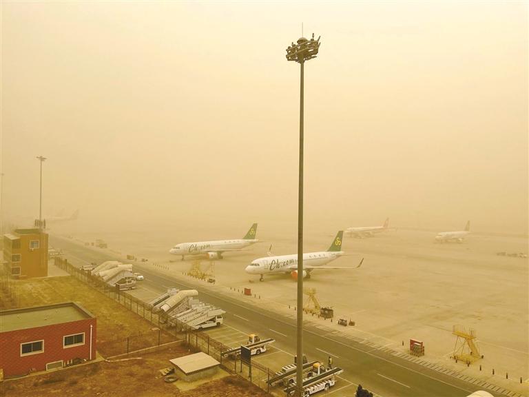 中川機場黃沙漫天。通訊員金帥群 黃貴彬 攝