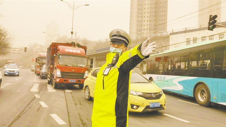 蘭州交警指揮疏導(dǎo)交通。龔家灣交警大隊供圖