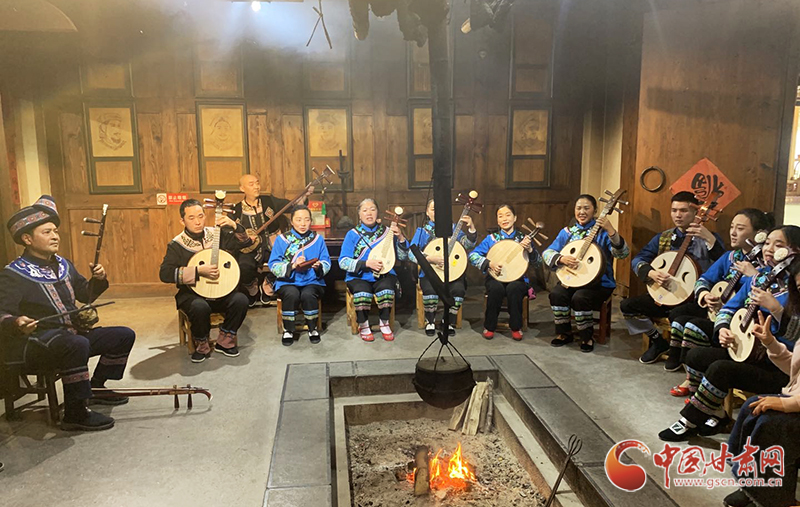 民間藝人在恩施土家女兒城景區內演唱土家小曲