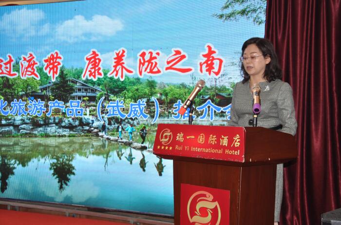 胡桂蕓在致辭中說,隴南和武威兩市文化旅游資源各具特色、互有優(yōu)勢,具有很強的差異性和互補性,隨著“一帶一路”建設的深入推進,兩地經濟社會和文化旅游的交流將更加活躍。尤其是環(huán)西部火車游旅游專線列車的開通,更加拉近了兩地的時空距離,極大地方便了兩地游客的出行。通過今天的推介活動,我們希望參加會議的旅行社、自駕游俱樂部,多組織武威的游客來隴南觀光旅游、康養(yǎng)休閑。同時,也希望隴南的文旅部門及旅游景區(qū)、旅行社提供各種優(yōu)惠以及優(yōu)質服務,為促進兩地文化旅游事業(yè)的合作共贏做出積極的貢獻。