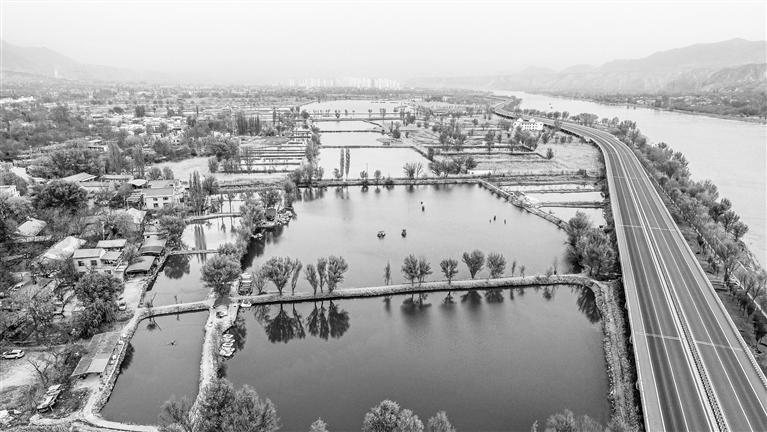 在永靖縣城,沿新修的濱河路西行,一路上芳草茵茵、楊柳依依,心曠神怡。這里是鹽鍋峽水庫的上游,水面寬闊,水速平穩,形成了許多池塘。碧水映襯著蘆葦、荷葉,遠山相依著藍天、白云,風光秀麗、景色宜人,是假期休閑的好去處。