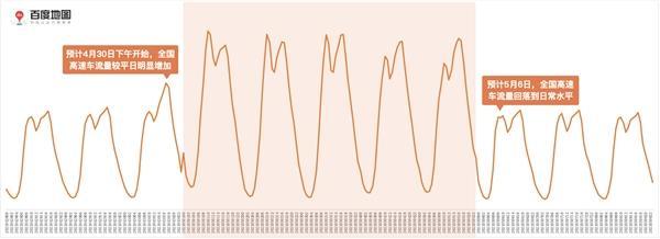 “爆發式出游”將使得5天假期期間全國高速的車流量都維持在高位,去程高峰預計將從4月30日晚開始,直到5月6日回落至正常水平。