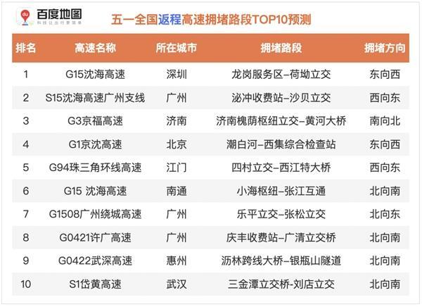 (2021年五一假期返程高速擁堵路段TOP10預測)