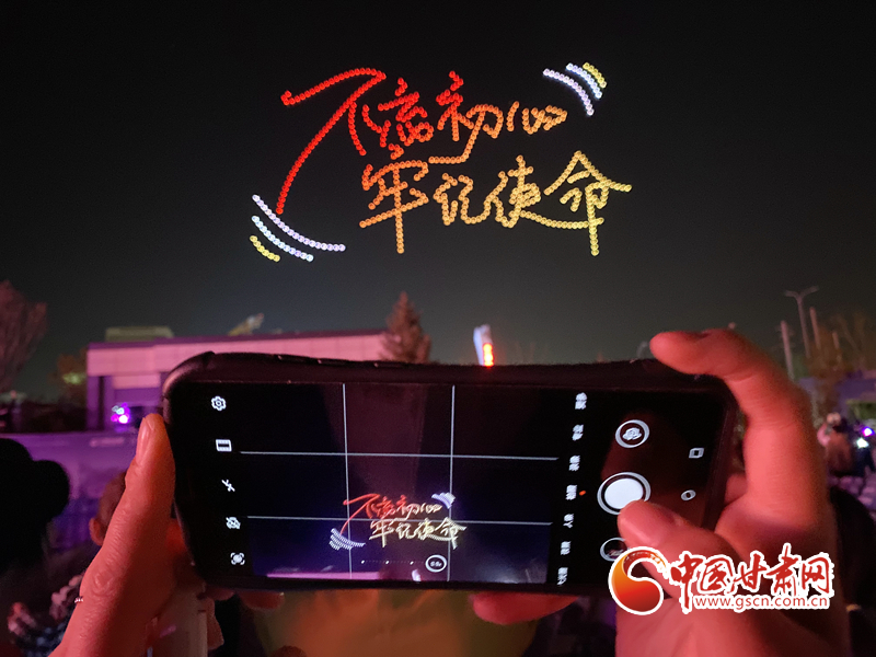 活動現場,千架無人機編隊以天空為幕,以“熒光”為筆,在金城上空分別繪就“慶祝中國共產黨成立100周年”“蘭州鐵橋”“奧體中心”等數幅壯美畫面,集中反映近年來蘭州市在經濟社會領域取得的成就。