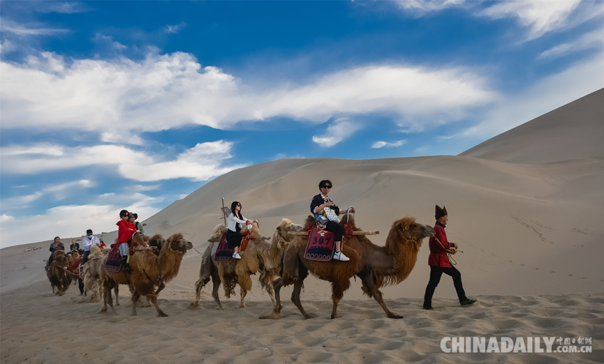 近日,來絲綢之路國際文化旅游名城甘肅敦煌游玩的游客,在騎駱駝暢游鳴沙山的過程中,驚異地發現,這里牽駱駝的駝戶穿上了一種古裝戲中才有的“胡服”,戴一頂高高的帶有帽檐的駝色帽子,頓感大漠旅行情趣倍增,絲路風情更加濃郁。