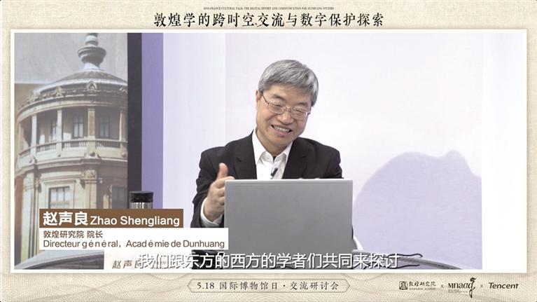 為迎接第45個國際博物館日的到來,敦煌研究院、法國吉美國立亞洲藝術博物館(以下簡稱“吉美博物館”)攜手騰訊,舉辦了“敦煌學的跨時空交流與數字保護探索”線上交流研討會。來自北京、深圳、蘭州及巴黎的專家們,借助騰訊會議,圍繞絲綢之路上的東西方文化交流,分享了最新的學術研究成果,并探討文物數字化保護與創新傳播的新路徑。會上,三方正式發起中法“數字藏經洞”項目,共同探索法藏敦煌文物的數字化保護與傳播發展的新方向、新模式、新方案,讓更多人通過數字窗口欣賞敦煌文物珍寶,感受敦煌文化之美。
