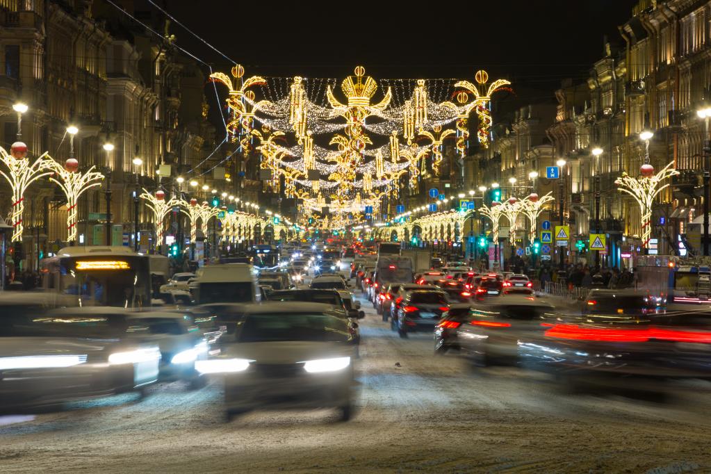 這是12月24日拍攝的俄羅斯圣彼得堡涅瓦街街景。