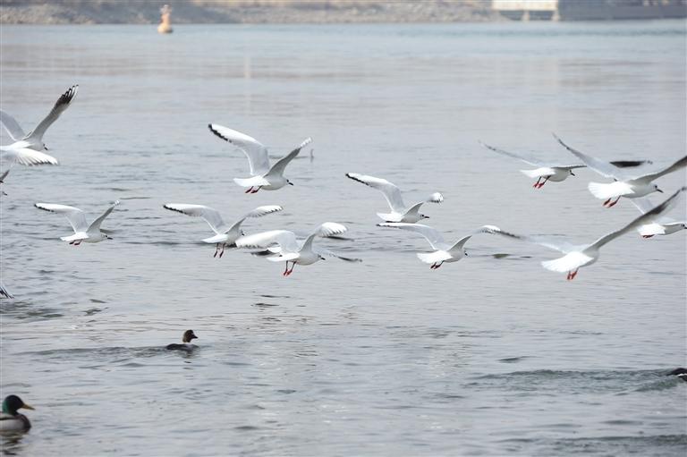 蘭州打造百里黃河風情線,以蘭州為中心的黃河兩岸成了網紅打卡地。據悉,隨著黃河上游生態環境的改善,越來越多的水鳥在這里過冬,成為蘭州的獨特景觀,捕獲了不少市民及外地游客的歡心。據統計,每年約有上萬只候鳥光臨蘭州,黃河風情線以及黃河銀灘濕地已成為候鳥棲息的“天堂”,市民不用去外地,在家門口的黃河兩岸就可以看見來蘭州越冬的白天鵝、紅嘴鷗、灰鶴、大白鷺、中華秋沙鴨等珍稀鳥類,今年已有17只天鵝落戶蘭州。