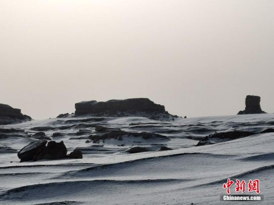 2月16日,敦煌世界地質公園雅丹園區揚揚灑灑降下一場大雪。封志勇 攝