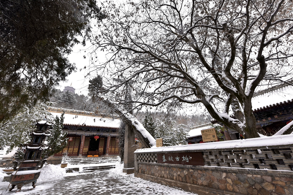 夏日炎炎,站在凈土寺觀音殿的高階之上,一聲鐘罄聲響起,仿佛震醒了山風,松濤幽碧隨之蕩漾,似是滌蕩了人間心塵,五蓮峰拖起紅墻青翠,中國古典色彩之美盡顯灑脫。雪落禪院,更是青松點翠,斗拱擎雪,莊嚴而不失華麗,踏雪只為聽靜中天籟聲。