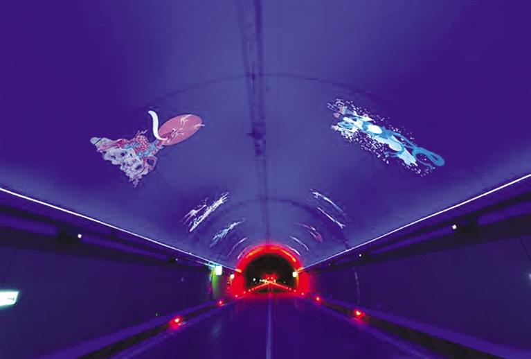 景觀照明系統(tǒng)主體效果充分融合甘肅文化特色,采用“飛天壁畫(huà)”“沙漠駝隊(duì)”等元素,利用洗墻燈襯托底色,投影燈展現(xiàn)景觀效果,實(shí)現(xiàn)為司乘人員打造人在畫(huà)中游的視覺(jué)感官,有效解決隧道內(nèi)長(zhǎng)時(shí)間駕駛的視覺(jué)疲勞和情緒波動(dòng),提升司乘人員駕駛舒適度。