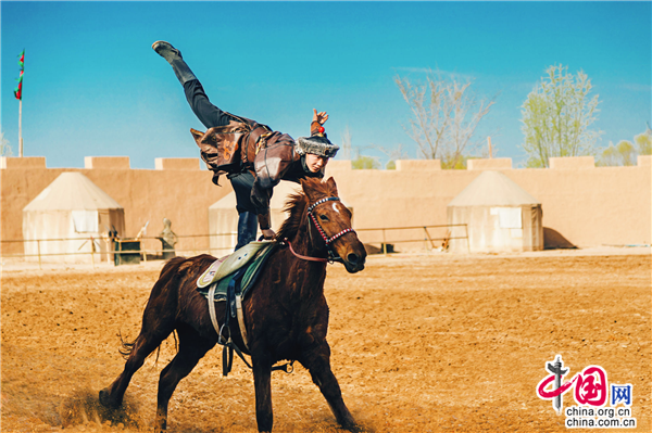 除此之外,游客在景區擂臺處不僅能夠觀看驚險刺激的市井雜耍,還有每天兩場的樂隊表演不容錯過。擂臺不遠處就是今年4月1日全新推出的實景馬戰《烽火西夏》演出場地,看完雜耍的游客可直接到馬場觀看接下來的演出。