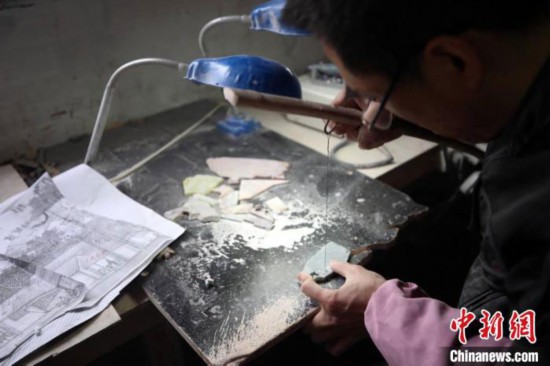 1971年出生的李成者從10多歲開始跟隨父親學(xué)習(xí)彩石鑲嵌技藝,在這一行已經(jīng)干了30多年。他說,彩石鑲嵌技藝在瑞安瀕臨失傳,目前在陶山鎮(zhèn)從事這一行業(yè)的不到10人。從這次制作彩石鑲嵌《清明上河圖》,他也學(xué)到了很多東西。