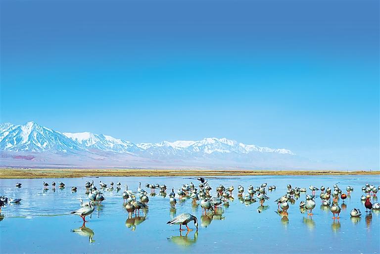 據了解,肅北鹽池灣國際重要濕地,主要作為斑頭雁、赤麻鴨和黑頸鶴的重要繁殖棲息地存在,每年有幾萬只候鳥遷徙、停歇和繁殖,在全球生物多樣性保護及國家生態安全戰略布局中具有舉足輕重的地位。