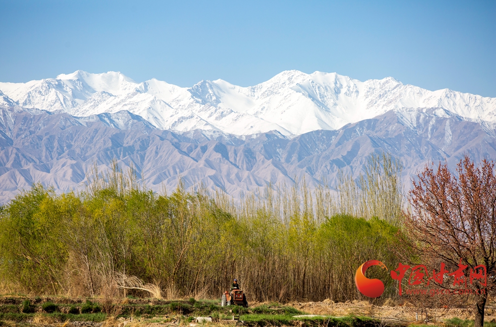 谷雨時節(jié),甘肅省酒泉市肅州區(qū)西洞鎮(zhèn)農(nóng)民搶抓農(nóng)時,忙碌在田間地頭,遠處的祁連山與近處的田園風光,構(gòu)成了一副美麗的春日農(nóng)耕畫卷。