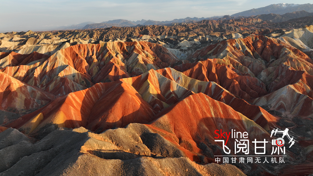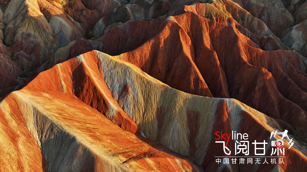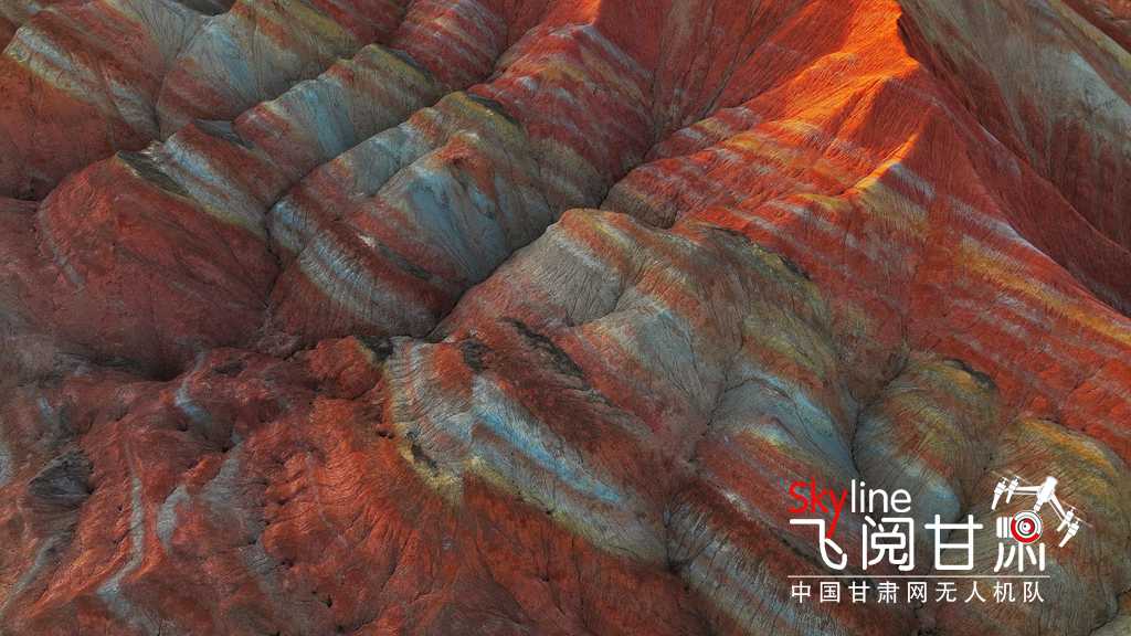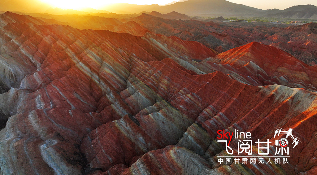 5月4日,落日余暉下的張掖七彩丹霞如同上帝打翻的調(diào)色盤(pán),紅色、黃色、白色、綠藍(lán)色相間的山丘在陽(yáng)光的照射下,像披上了一層紅色輕紗,熠熠泛光,色彩艷麗,堪稱大自然的涂鴉神功。