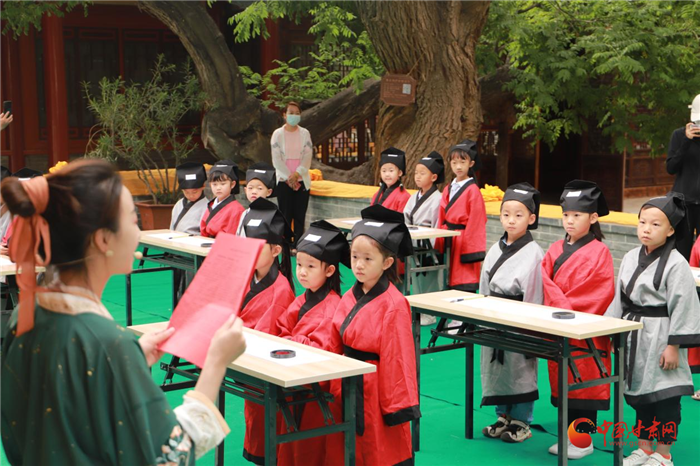 活動二,“開筆啟蒙 詩禮少年”開筆禮活動成功舉辦。孔子曰:“不學(xué)禮,無以立”,“開筆禮”古稱“破蒙”,為人生“四禮”之一,也是少兒開始識字習(xí)禮的一種啟蒙教育形式,寄托了對孩子成長的美好企盼。少年智則國智,少年強則國強,在文廟舉辦“開筆禮”,就是為了傳承中華優(yōu)秀傳統(tǒng),增強學(xué)子文化自信,激發(fā)學(xué)習(xí)熱情,為中華民族的偉大復(fù)興刻苦學(xué)習(xí),努力奮斗。