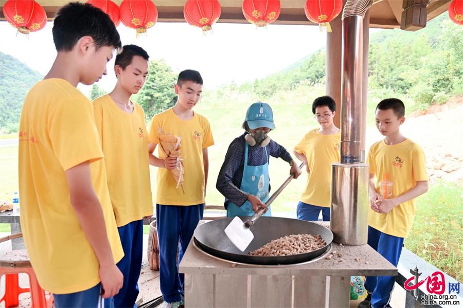 墟市在客家人眼中是約定俗成的集市交易所,與客家人的生活密不可分。為了還原客家傳統(tǒng)墟市的熱鬧場面,現(xiàn)場特別設(shè)置了客家墟市。游客們不僅品嘗了地道的寧化特色小吃,還通過親手打糍粑、制作濕炒花生等互動,沉浸式體驗(yàn)了一把當(dāng)?shù)匦〕缘闹谱鬟^程。