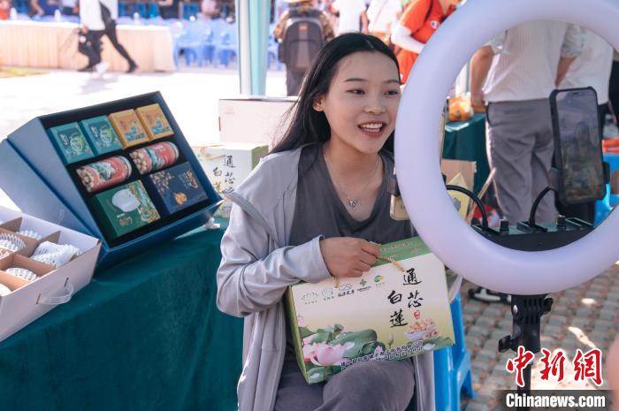 主播現(xiàn)場直播帶貨,銷售建蓮。 李南軒 攝