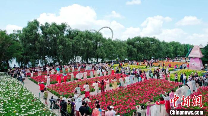 文化節的活動吸引了眾多市民的熱情參與。清晨,沈陽市三好橋畔的花田廣場里,早早就聚集了周末出行游玩的、慕名參與活動的人們來與盛放的百合花及身著漢服的“演員”們合影留念。