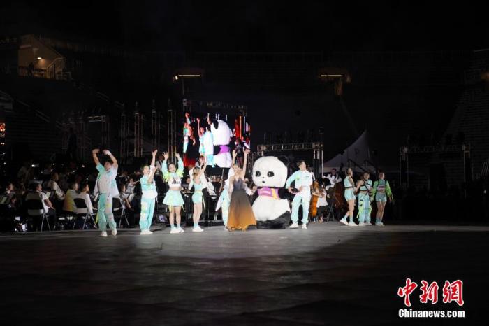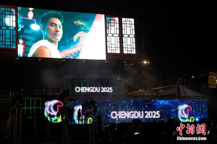 圖為閉幕式現場進入“成都時間”。中新社發 程軒 供圖