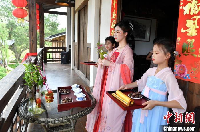 資料圖:圖為身著漢服的姑娘們展現了屬于七夕最傳統的節日文化內容——祭星乞巧。中新社記者 劉可耕 攝