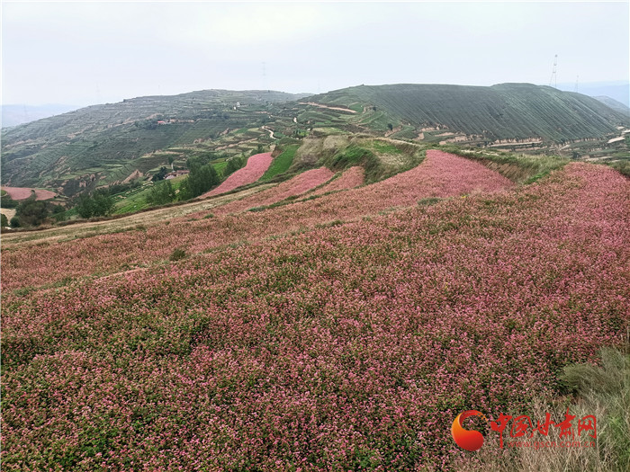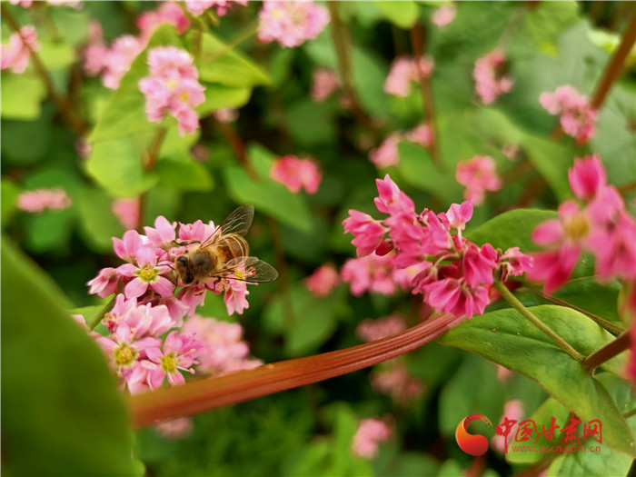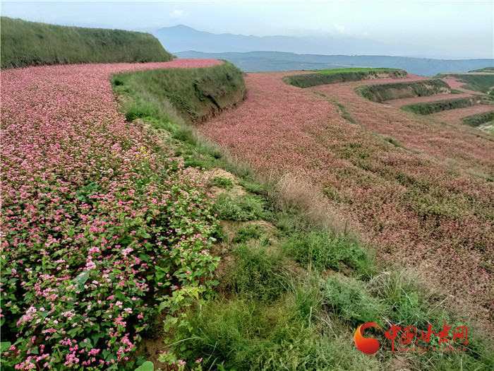 秋色漸濃,位于榆中縣甘草店鎮郭家灣村的蕎麥花兒開的正艷。