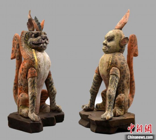 圖為唐代吐谷渾王族墓葬群慕容智墓出土鎮墓獸。(資料圖) 甘肅省文物局供圖