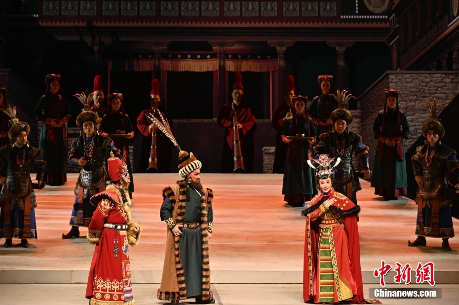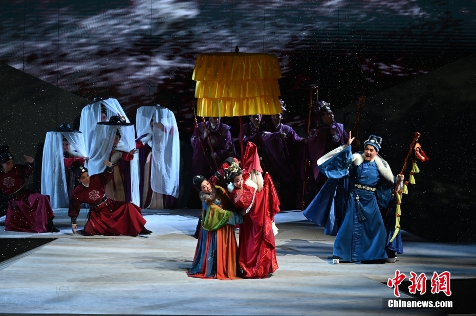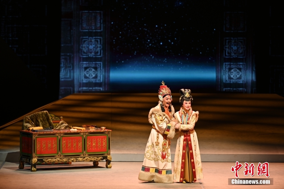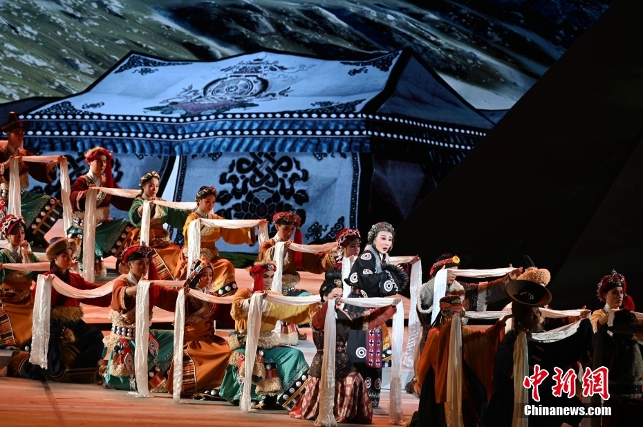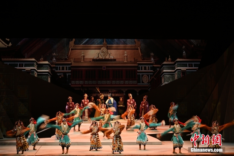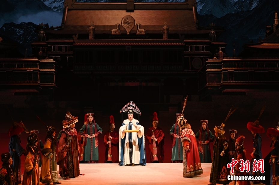 10月11日晚,大型新編歷史粵劇《文成公主》在廣東廣州大劇院首演。該劇以文成公主和親進藏的歷史事件為依據創作,講述了文成公主堅守吐蕃四十年,促進了吐蕃經濟、文化的發展,加強了漢藏人民的友好關系。中新社記者 陳楚紅 攝