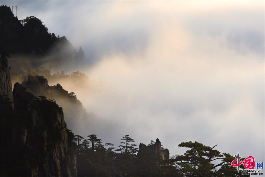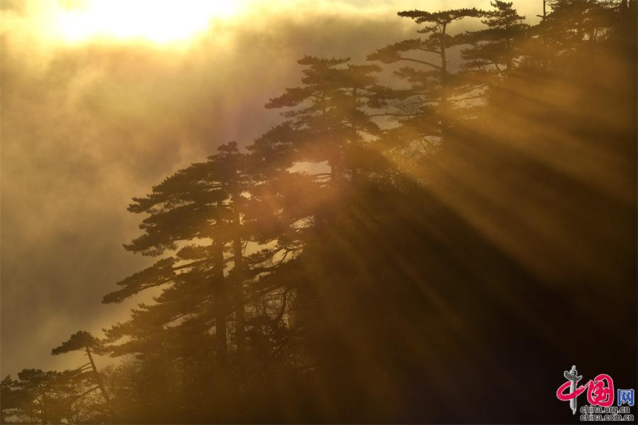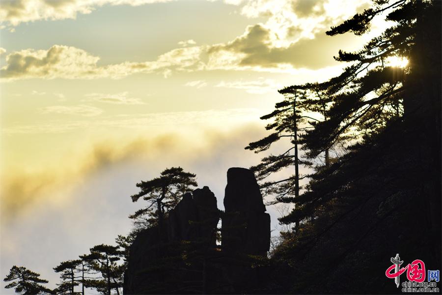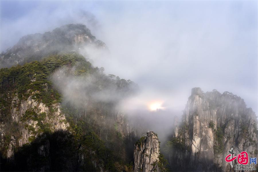 在黃山風景區的始信峰,群峰中時而云海翻騰,時而霧靄朦朧,時而艷陽高照,還出現了佛光奇觀,勾勒出一幅幅黃山獨有的勝景。