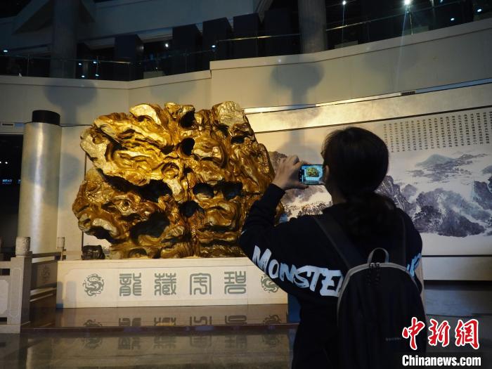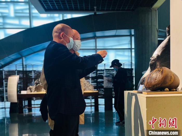 圖為一位參觀者用手機拍攝奇石。李嬌陽 攝