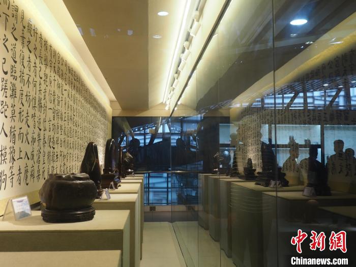 圖為參觀者隔著玻璃展柜觀賞奇石。李嬌陽 攝