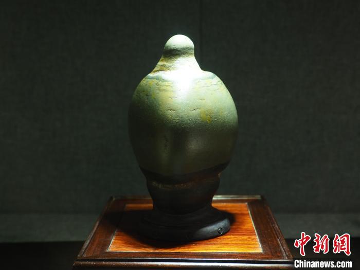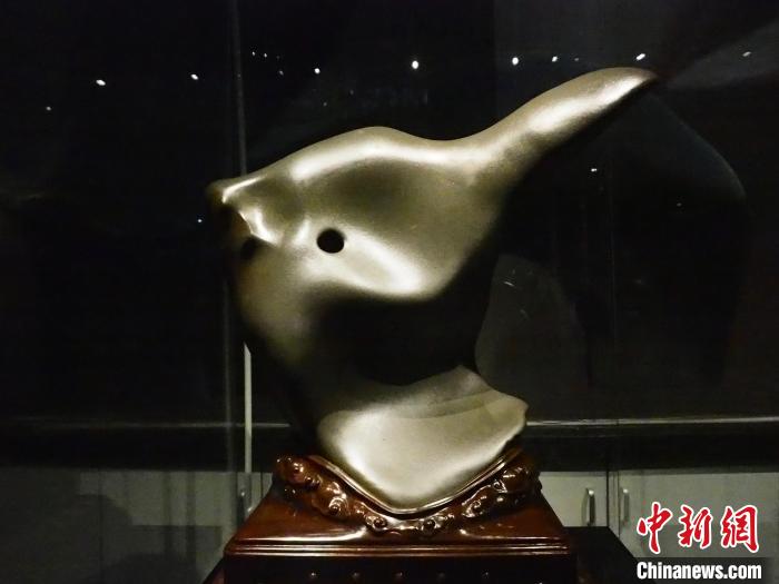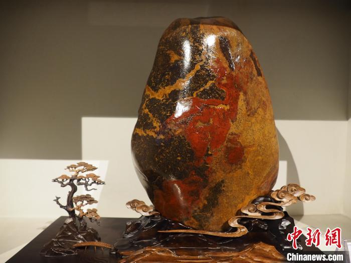 圖為現場的一塊奇石展品形如瓷瓶。李嬌陽 攝