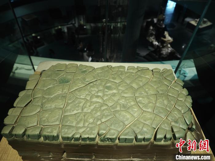 圖為現場展出的一塊奇石宛如碧綠的田地。李嬌陽 攝