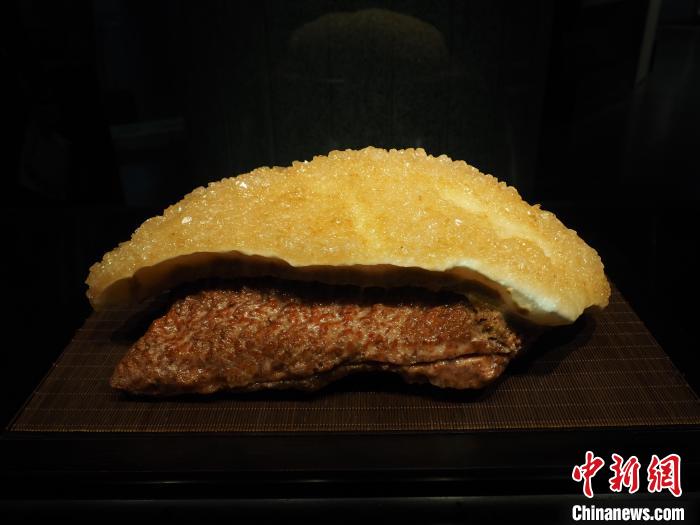圖為現場的一塊奇石展品形貌如同泛著油光的豬肉。李嬌陽 攝