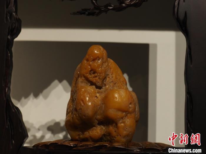 圖為現場展出的一塊奇石形似和尚。李嬌陽 攝