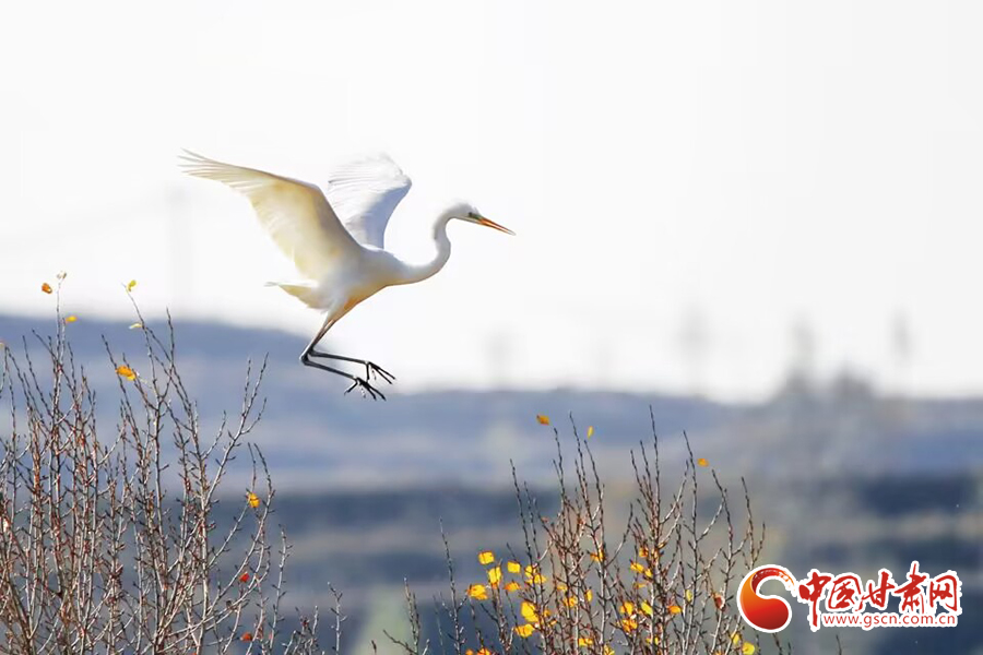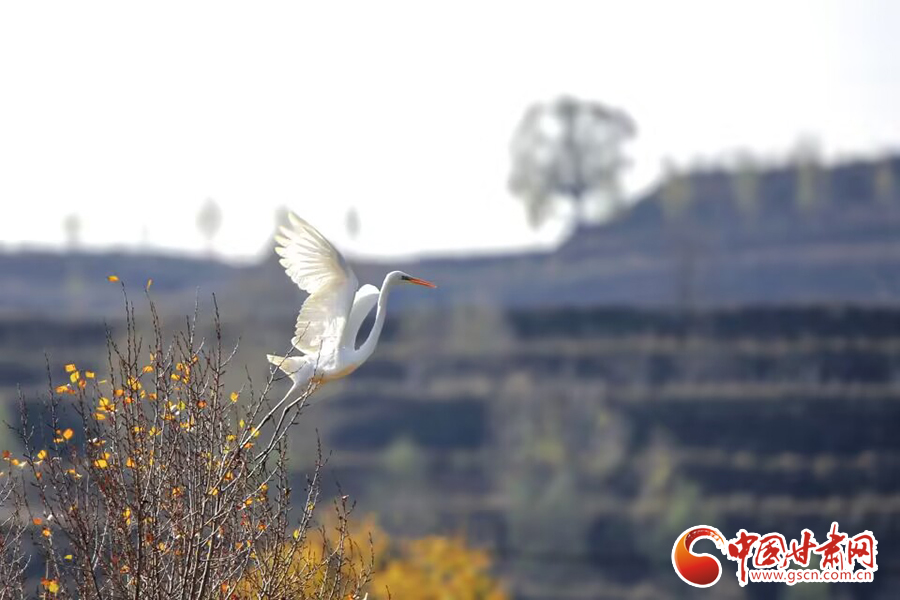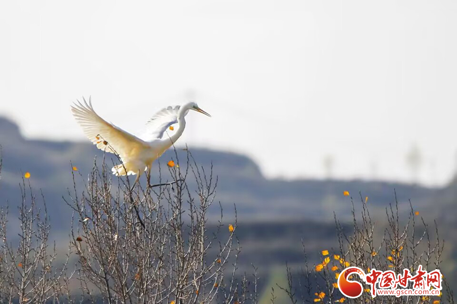 初冬時節,在平涼市崇信縣于家灣鷺鳥紛飛,繪就一幅人與自然和諧共生的美麗畫面。