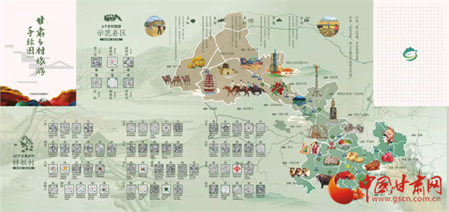 據(jù)了解,為了深入推進(jìn)文旅市場(chǎng)復(fù)蘇百日攻堅(jiān)行動(dòng),加強(qiáng)產(chǎn)品開發(fā)供給,促進(jìn)鄉(xiāng)村旅游升溫,省文旅廳于12月13日發(fā)布了2022版甘肅鄉(xiāng)村旅游手繪圖。手繪圖以“相約隴原促振興·富了口袋富腦袋”為主題,對(duì)2022年創(chuàng)建的6個(gè)鄉(xiāng)村旅游示范縣,60個(gè)文旅振興鄉(xiāng)村樣板村開發(fā)設(shè)計(jì)了電子“二維碼”,設(shè)置了甘肅省鄉(xiāng)村旅游60條四季精品線路,幫助游客品味鄉(xiāng)村風(fēng)情、感知鄉(xiāng)村文化、體驗(yàn)鄉(xiāng)村魅力,進(jìn)一步展示甘肅鄉(xiāng)村旅游新形象、擴(kuò)大鄉(xiāng)村旅游影響力,做亮“隴上鄉(xiāng)遇”鄉(xiāng)村旅游品牌,打造“隴上鄉(xiāng)遇”鄉(xiāng)村旅游全景圖。