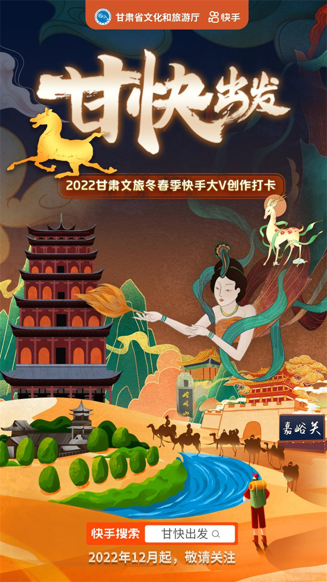 為加快推進(jìn)全省文旅行業(yè)復(fù)工復(fù)產(chǎn),激活冬春旅游市場,甘肅省文旅廳聯(lián)合快手科技舉辦的“甘快出發(fā)”2022甘肅文旅冬春季快手大V創(chuàng)作活動(dòng)于12月16日啟動(dòng)。本次活動(dòng)整合快手文旅達(dá)人創(chuàng)作力量,10名來自全國的快手粉絲平均超過100萬的大V組建成“甘快出發(fā)”2022甘肅文旅冬春季快手大V創(chuàng)作采風(fēng)團(tuán),于12月16日—31日分組分批次落地甘肅10城,以“狂想甘肅十大必體驗(yàn)?zāi)康牡?rdquo;為品牌創(chuàng)作方向,進(jìn)行甘肅文旅深度采風(fēng)和短視頻內(nèi)容制作,為網(wǎng)民呈現(xiàn)多元、細(xì)致、獨(dú)特的甘肅角度,打造獨(dú)有的“視頻甘肅”名片。